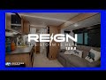 The Storm is HereDespite its size, Reign’s interior design offers ample storage and space for all the necessities. Its effortless, ergonomic storage solutions create additional space in unexpected places, from underbed storage to unique shelving and cabinetry. The kitchen features heavy duty thinscape composite countertops, which can also be found around the bathroom sink. Paired with the European inspired interior design, bringing a unique offering unlike anything else in the industry, the dimmer line lights offer campers a range of mood lighting throughout the day.